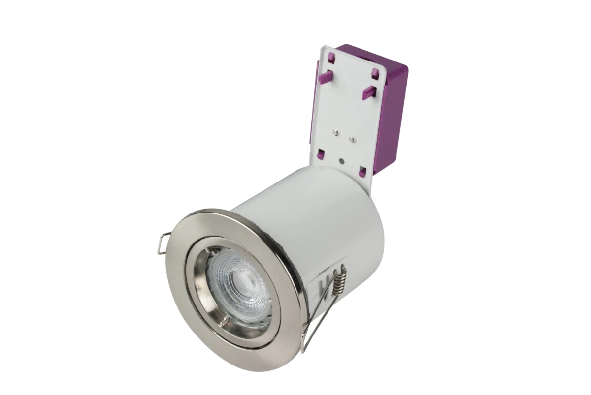 - STARLING 50W Mains Voltage Steel Fire Rated Downlight, IP20, 85mm, Brushed Chrome