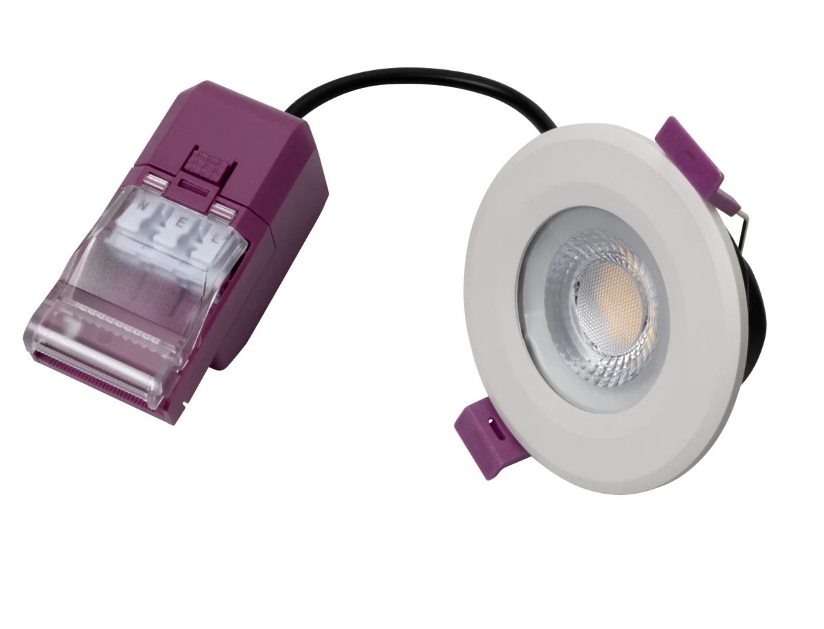 - TRIUMPH EXPRESS 4/6 Dual Wattage IP65 Fire Rated Downlight CCT4 2 part connector white Trim