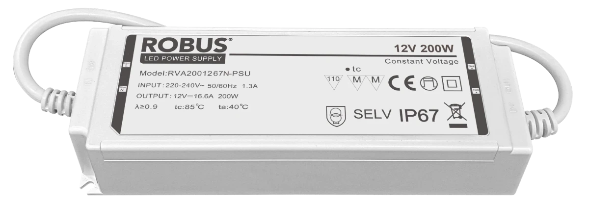 - VEGAS 200W, 12V, IP67 constant voltage driver, non dimmable