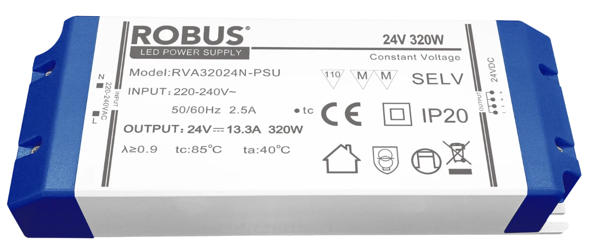 - VEGAS 320W, 24V, IP20 constant voltage driver, non dimmable