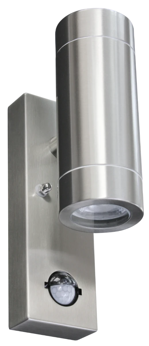 - CANEFINCH GU10 Up/Down Wall Light, IP44, PIR, Double, Brushed Chrome